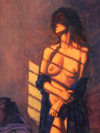 1998Vrouw wegduikend in haar innerlijke fantasie wereld. Prints zijn verkrijgbaar. Ze worden geprint op zuurvrij museum kwaliteit fine art papier 310 grams ‘Hahnemuhle Photo Rag papier’, op een formaat van 60 x 80 cm, met een bescheiden wit rand, welke qua afmeting afhangt van de verhouding van het schilderij. De verkoopprijs is € 295,-. En kunnen binnen Nederland worden verzonden voor €15,- en zijn inclusief BTW Selecteer de Print of Giclee van uw keuze en zend deze naar rene@zwaga.com . U krijgt dan spoedig antwoord en het verzoek om uw adres te sturen en krijgt u verdere informatie de mogelijke wijze van betaling. Ook bepaald u dan samen met mij hoe de Print of Giclee zal worden afgewerkt.